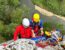 Das Übungsziel war klar angegeben. „Ein Mitarbeiter der Baufirma liegt mit Herzinfarkt auf der obersten Gerüstplattform am Kallenberg und muss schnellstens geborgen werden“. Nach der Erstversorgung und Stabilisierung durch die Helfer und den Bergwacht-Arzt auf dem Gerüst, wurde der „Verletzte“ in die „Gebirgstrage“ gelegt und mittels Seilen etwa 16 Meter bis zum Fuß der Ruine abgeseilt. Dort übernahm der Rettungsdienst den „Verletzten“ zum Transport in das Krankenhaus. Bei der Abschlussbesprechung konnte man feststellen, dass die im Winter geübte theoretische Ausbildung sehr gut in die Praxis umgesetzt wurde. Auch die Anregungen durch den Bergwacht Arzt, der viele interessante Aspekte einbrachte, werden in die weitere Ausbildung mit einfließen. Damit solche Bergungen reibungslos und erfolgreich verlaufen, ist eine laufende Weiterbildung unumgänglich. So treffen sich die Bergwächtler jeden Mittwoch in der Fridinger Diensthütte zur Weiterbildung. Hierzu sind weitere Interessierte jederzeit willkommen